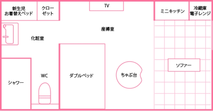 - ミニキッチン・冷蔵庫・電子レンジ・調乳用電子ポット・ティーセット